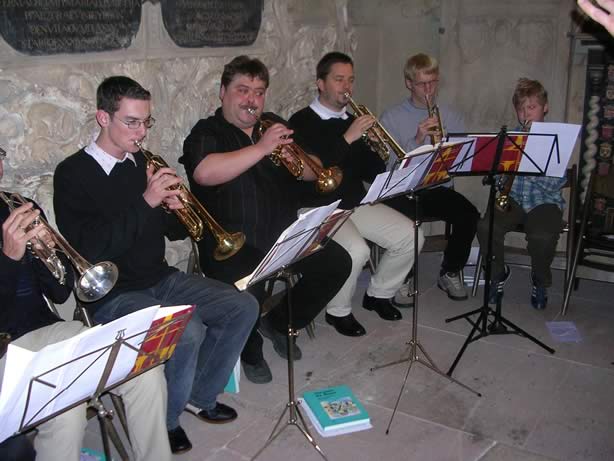 Der Posaunenchor im Oktober 2004 bei der Installation von Dekanin Hoffmann in der Schlosskirche Bad Dürkheim.